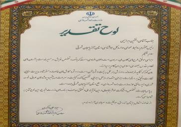 به پاس مجاهدت، تخصص و مشارک موثر جنابعالی در این فرآیند ملی و تحقق اهداف و برنامه های وزارت متبوع، این لوح تقدیر به شما اهدا می گردد.